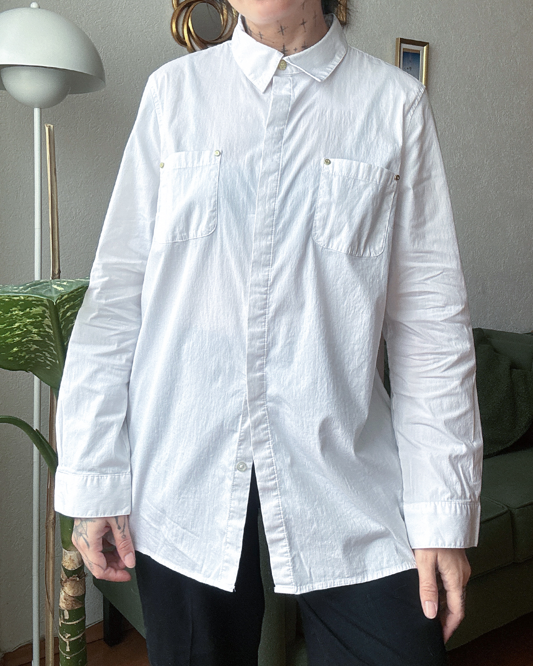 Camisa blanca de corte recto. 70%. Tiene lindos detalles de botones dorados, muy cómoda.