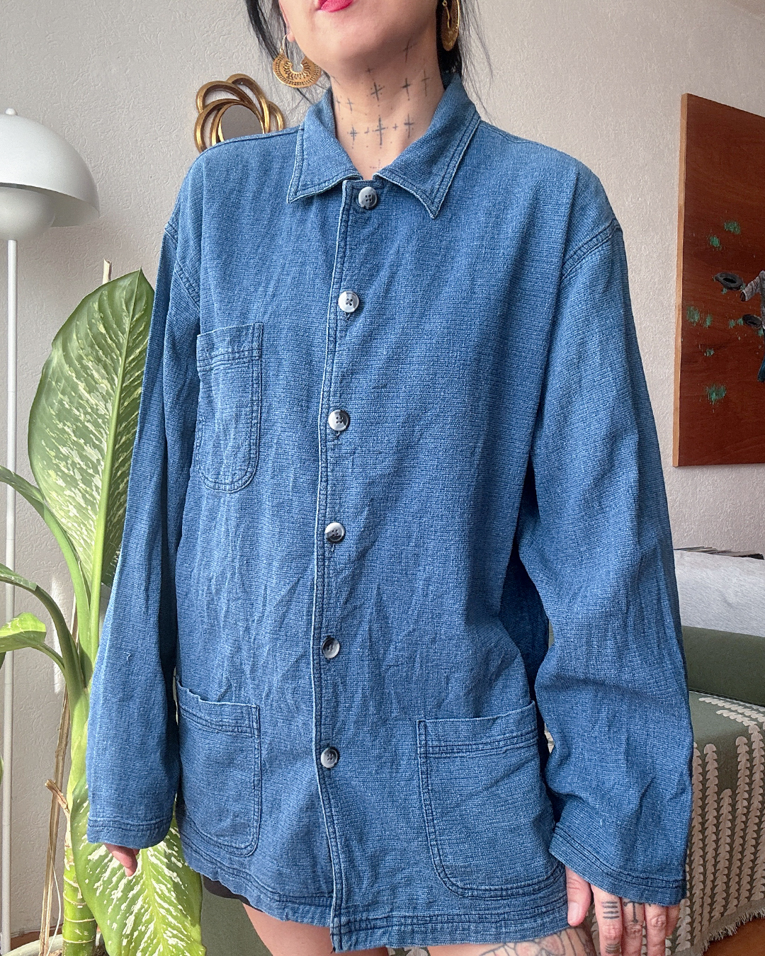 Camisa de algodón resistente, corte recto y bolsillos amplios. Tipo workwear.