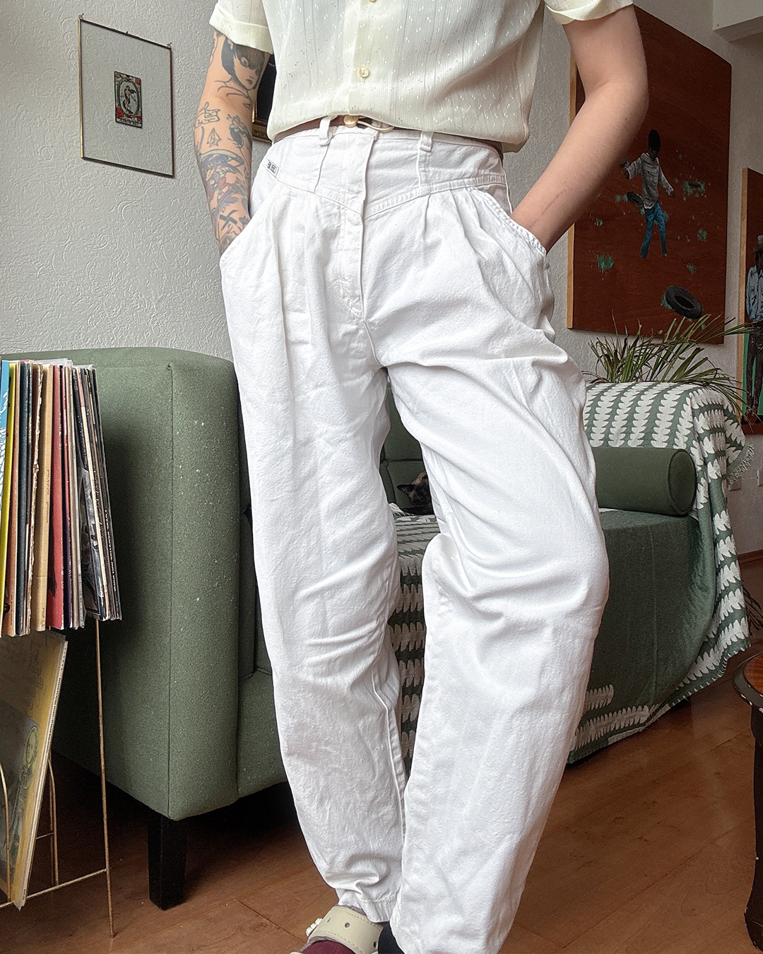 Pantalón de algodón súper bello, está nuevo literalmente. Corte cómodo, corte alto, pinzas suaves y bolsillos amplios.