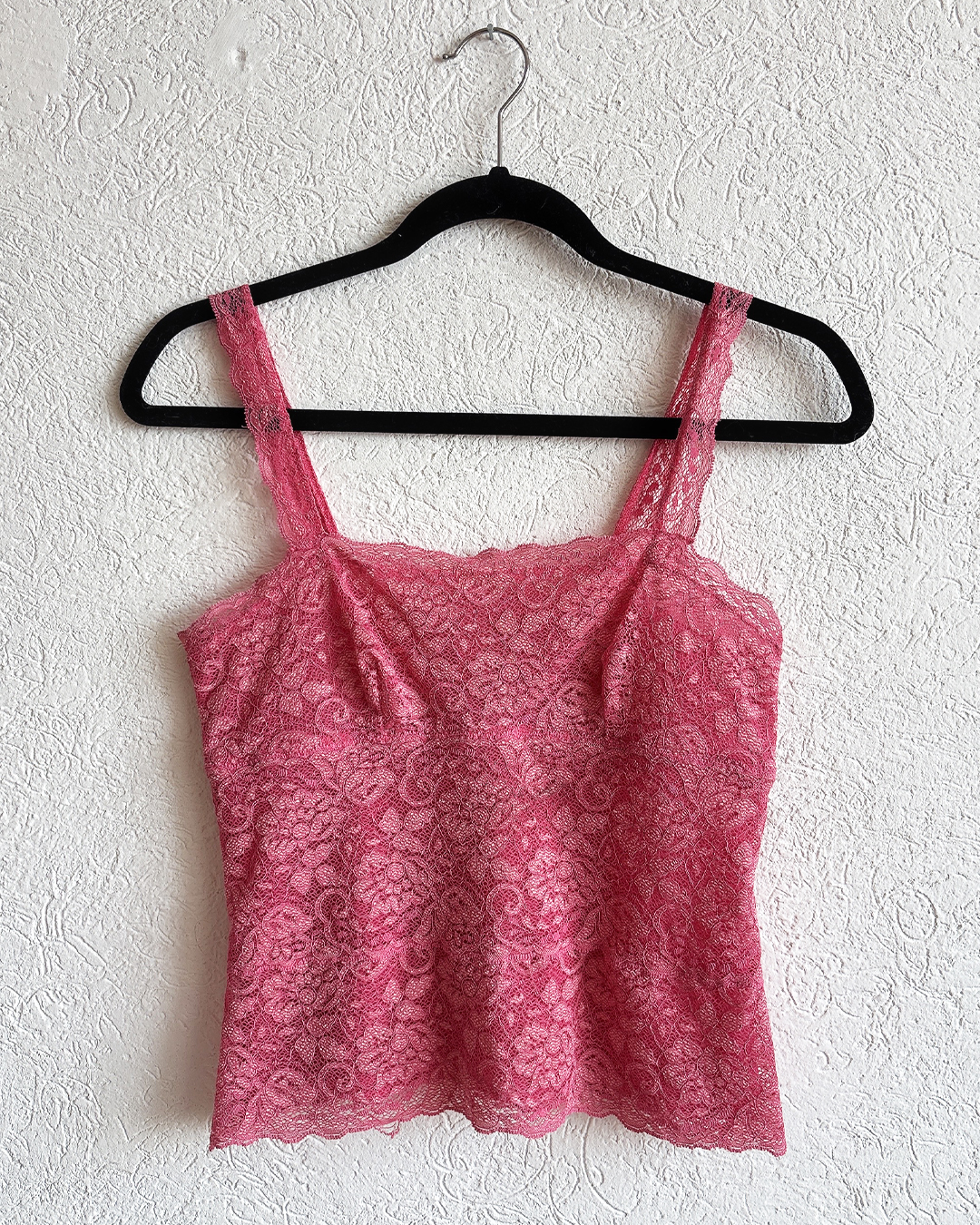 Top de encaje rosa, súper delicado, romántico y ajustable al cuerpo.