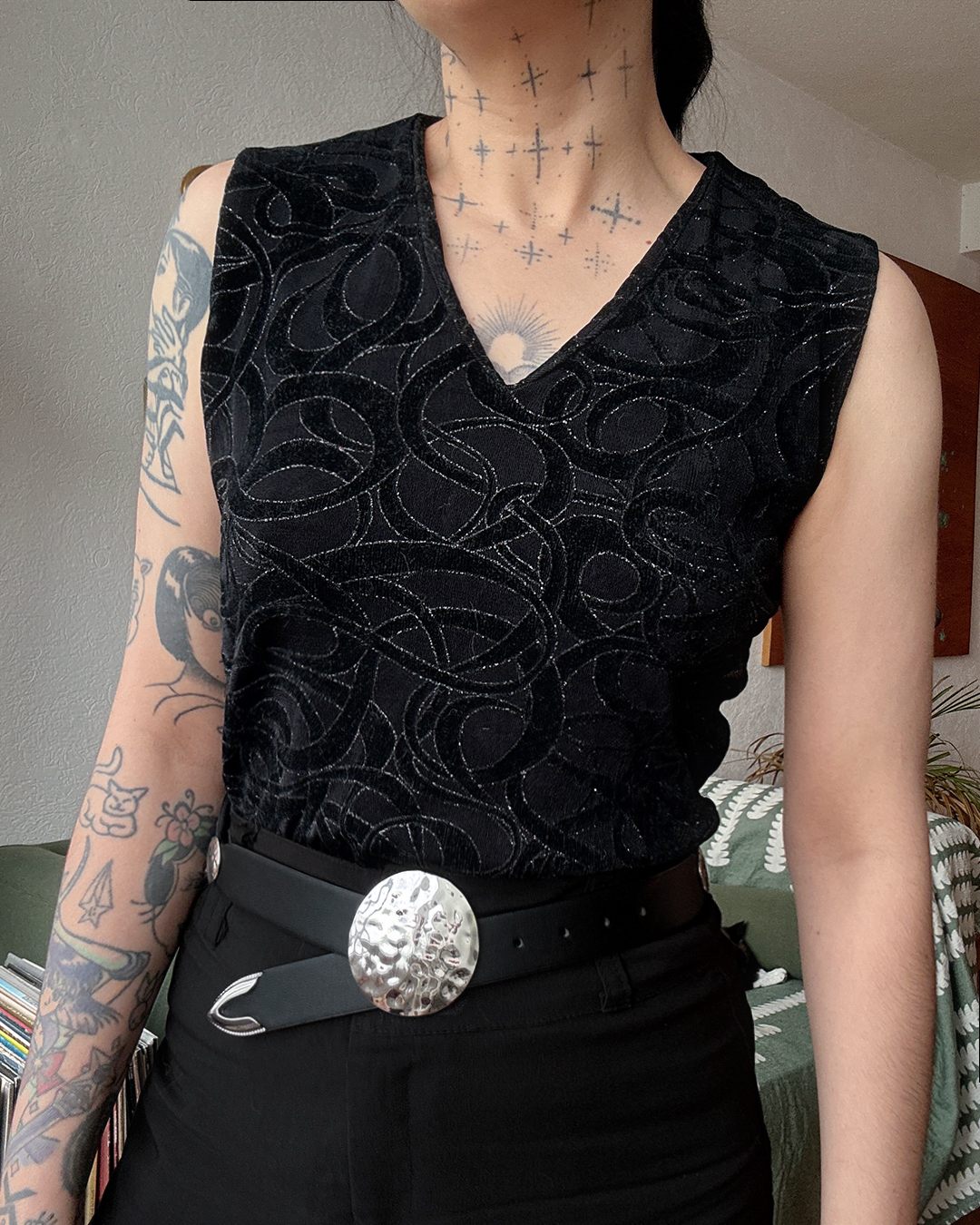 Top negro con líneas en glitter, demasiado bello y 2000’s